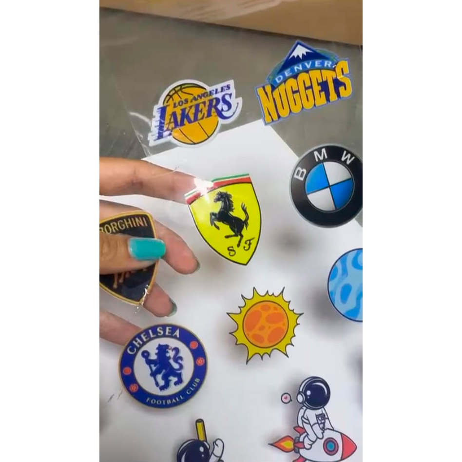 Las etiquetas en sticker DTF UV son adhesivos impresos con la tecnología DTF (Direct to Film) combinada con acabado UV, lo que les da colores intensos, gran nitidez y detalles en relieve o con brillo selectivo.